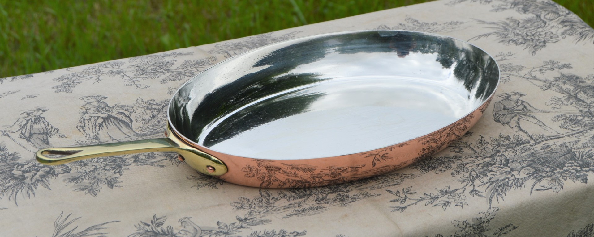 French Copper pots, pans and utensils come in all shapes and sizes, here is a short guide when buying pans to their names and uses. Be aware, there is a pan for almost everything and this will not be an exhaustive list! The French term is in italics and the common English translated version or everyday name for the pan follows. This is the first part of four giving examples of different types of copper casseroles and frying or sauté pans.