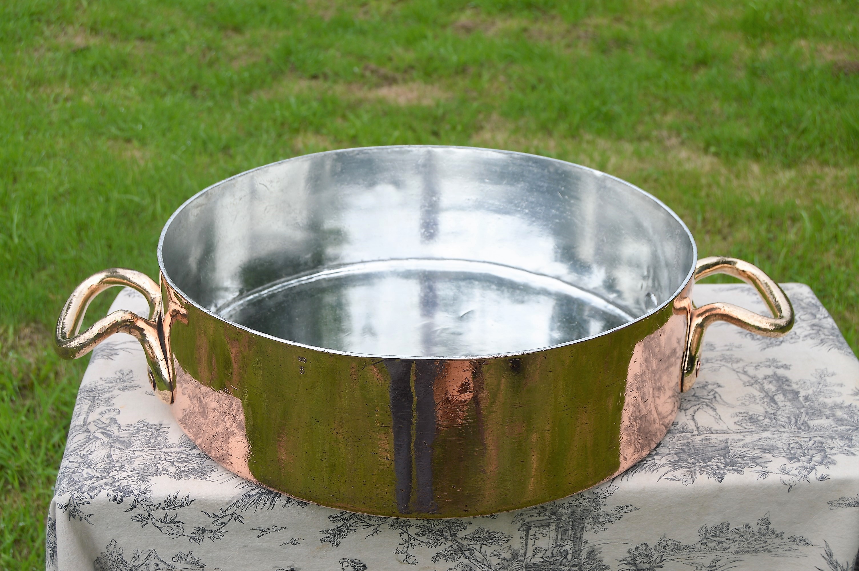 Casserole en cuivre avec queue et poignée en font/Copper casserole with helper handle